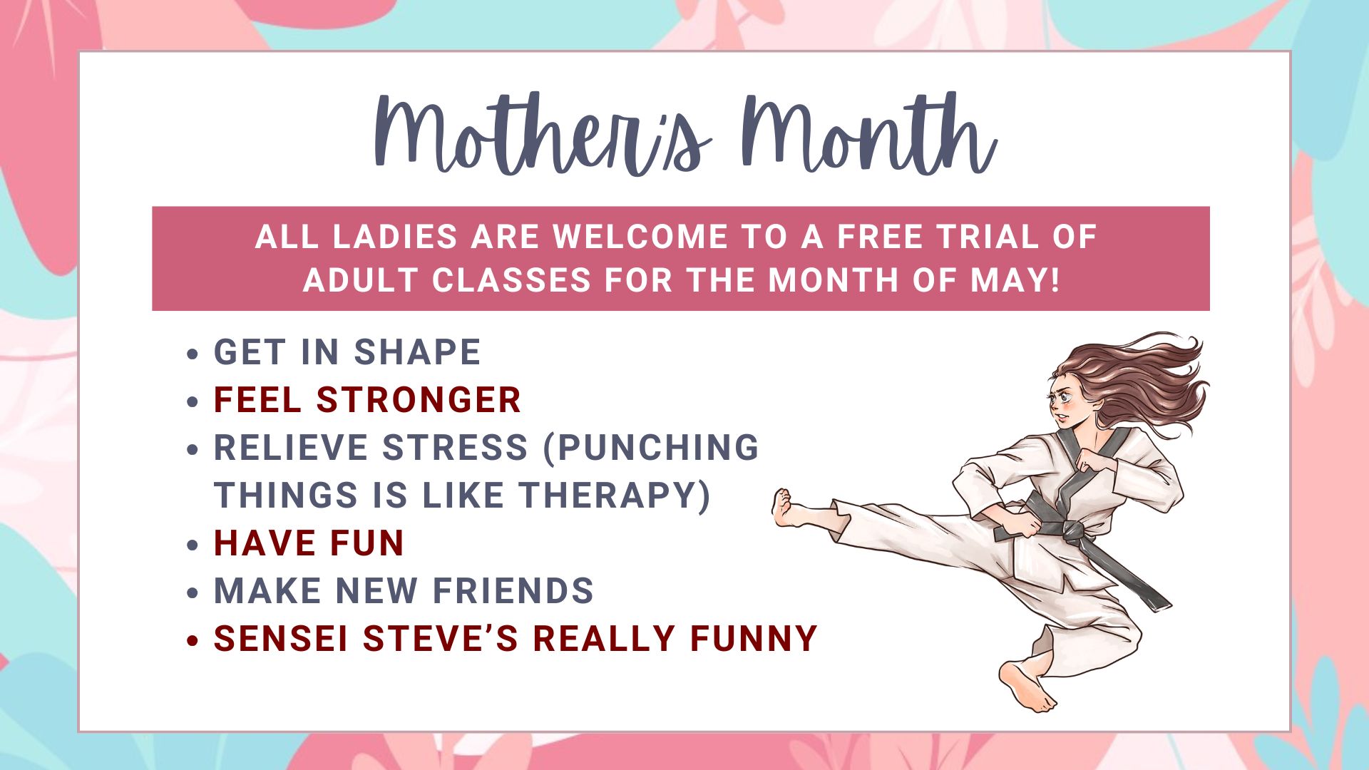 adult classes for the month of May!